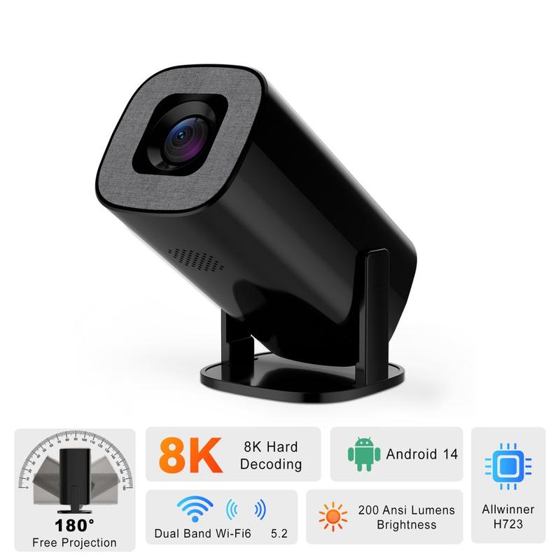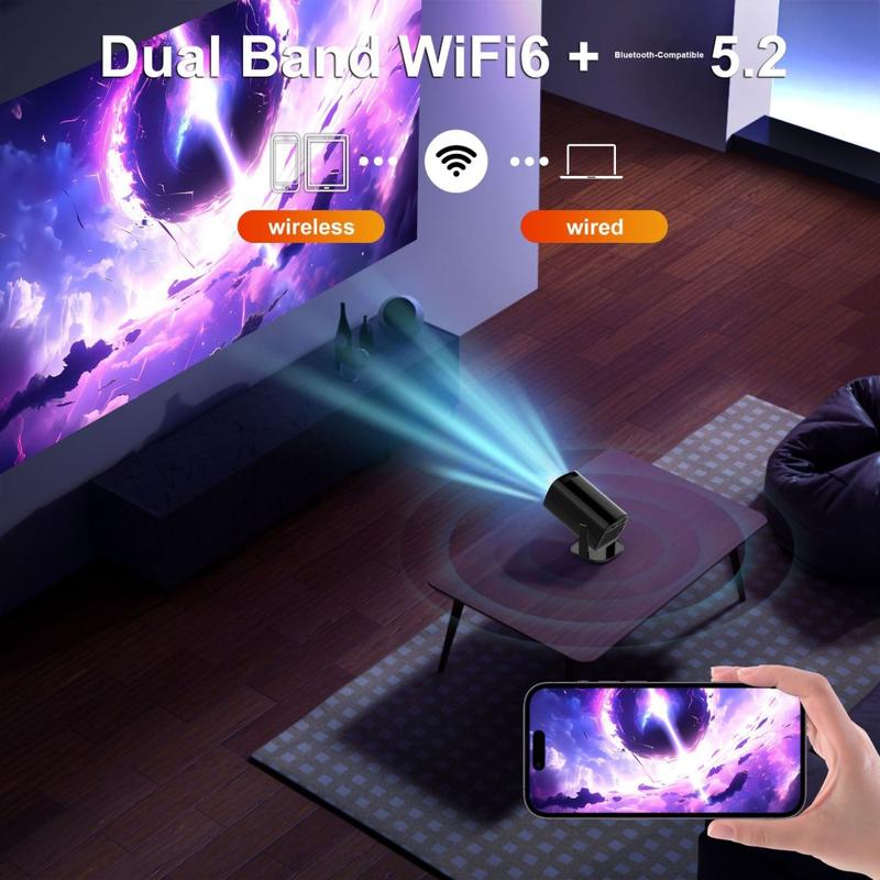 V1 Portable Android 14 Projector (200 ANSI) - 720p Native, Auto Keystone, 180 Tilt, WiFi 6 Dual-Band & Bluetooth 5.2, 1GB/8GB