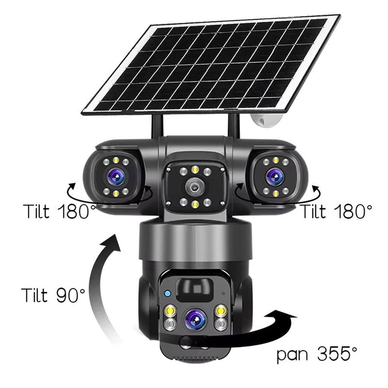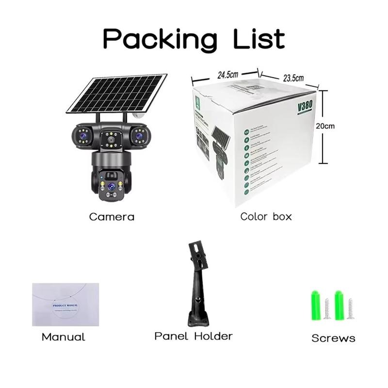 V380 Pro Solar 3-Lens Outdoor PTZ WiFi Security Camera 2K - Human Tracking, Two-Way Audio, IP67, H.265, TF/Cloud Storage