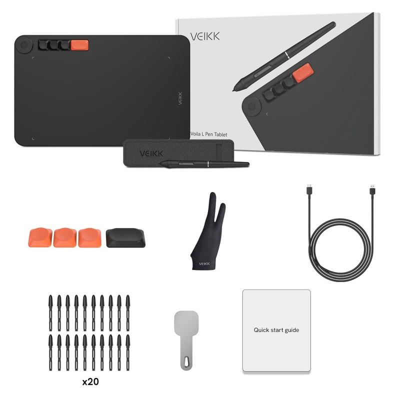 Veikk VO1060 290 PPS Drawing Tablet with 60-degree Tilt, 8192 Level Pressure Sensitive Pen, 20 Pen Tips - 12.6x7.9"
