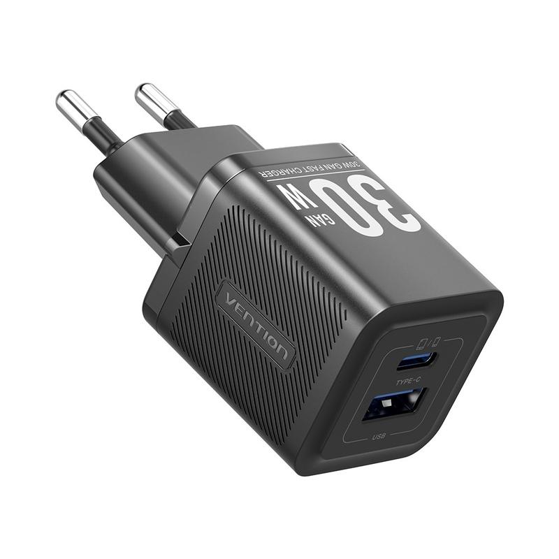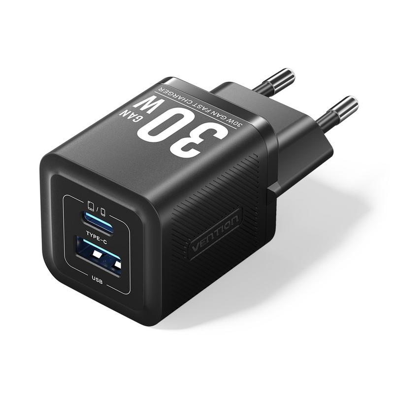 Charge phones, tablets and earbuds at top speed with one pocket-size plug. The VENTION FEQ GaN charger uses next-gen gallium nitride components to deliver a full 30 W through either its USB-C or USB-A port, while staying cooler and smaller than old-style silicon bricks. Multi-protocol support means fast, safe power for everything from iPhone and Galaxy handsets to Nintendo Switch and Bluetooth speakers, at home or on the road.