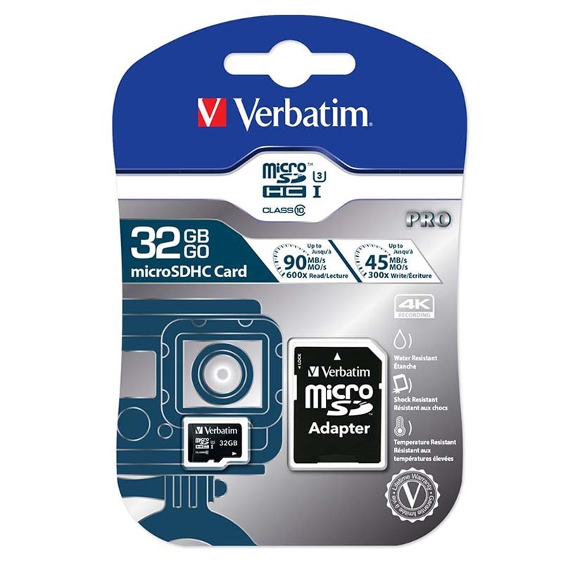 Verbatim Pro MicroSDHC paměťová karta - třída 10 - UHS třída 3 - 4K UHD