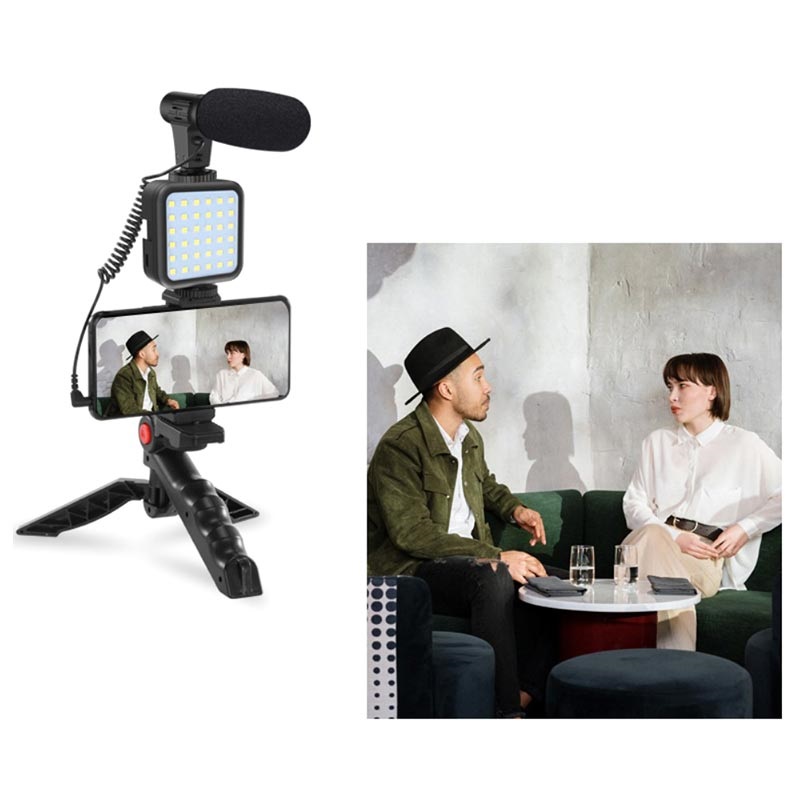 Vlogging Camera Kit pro soupravu živého streamování -01lm - mini stativ, mikrofon, držák telefonu, LED světlo
