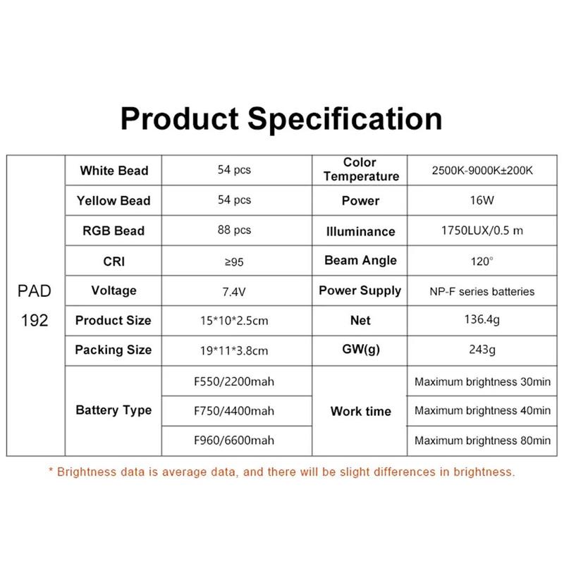 VLOGLITE PAD192RGB LED Camera Fill Light RGB Plnobarevné přenosné fotografické osvětlení pro DSLR fotoaparát Gopro