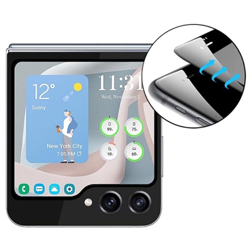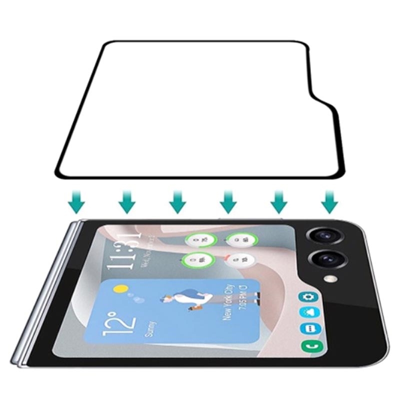 - Celokrytá ochranná tvrzená skla pro vnější displej Samsung Galaxy Z Flip5