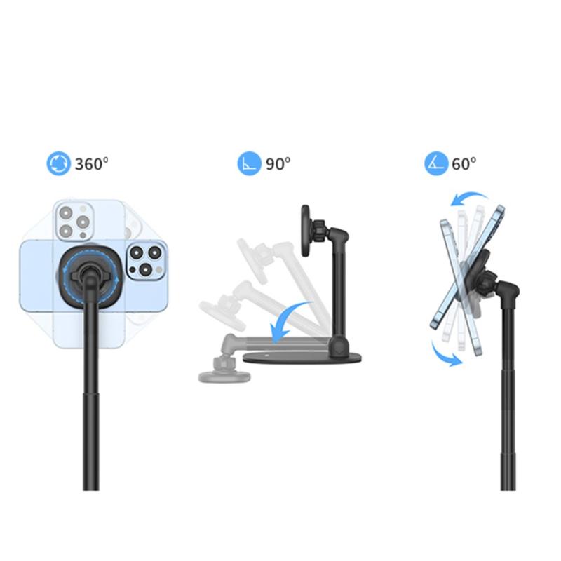 Vrig MG-04 Rotating Magnetic Desk Stand for iPhone 12-17 & MagSafe Cases – Adjustable 22-36 cm Carbon-Steel Phone Holder