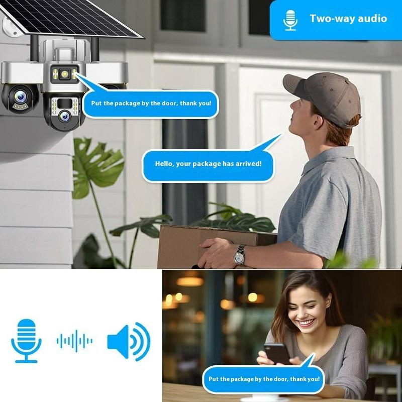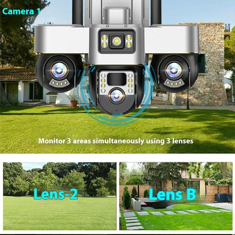 VTS30 V380pro Solar Triple-Lens Security Camera - 360 ° Wi-Fi / 4 G Surveillance System with 8 W Panel & 8 000 mAh Battery