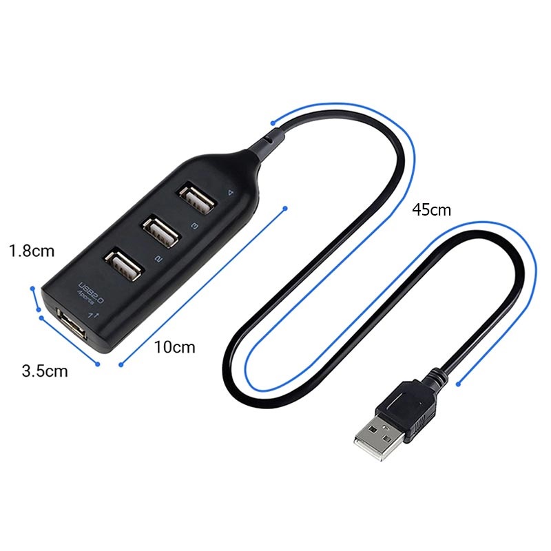 vysokorychlostní 4-portový USB Hub 2.0 s 45 cm kabelem-nabíjení a synchronizace, 480 Mbps