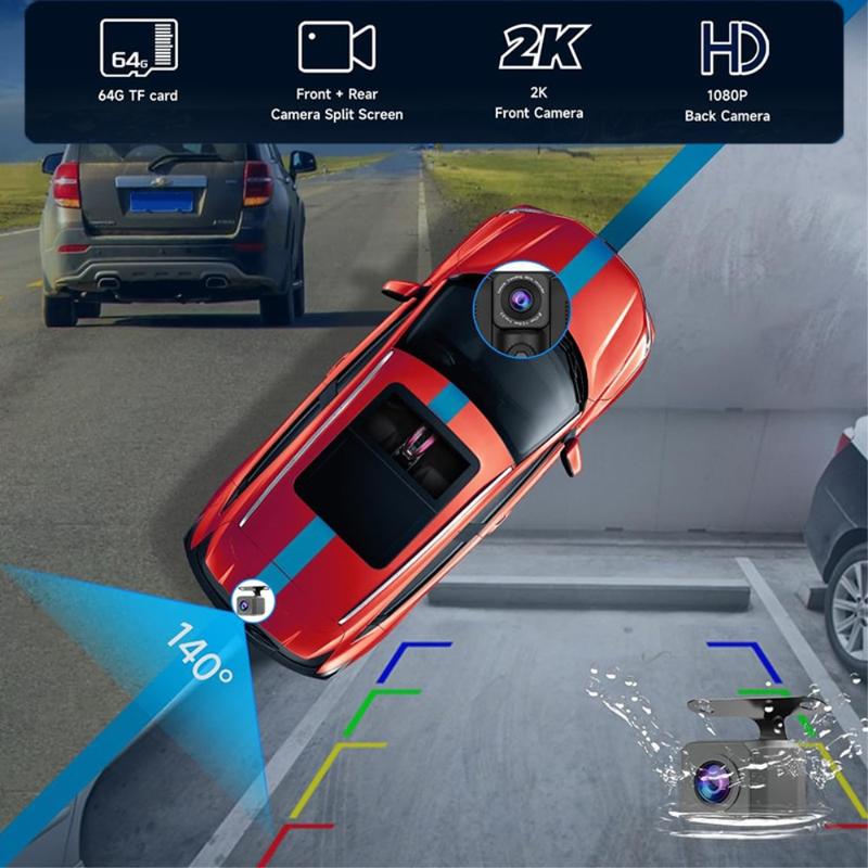- Dual-Recording Dash Cam: Front dash cam captures the road in detail, while the rear AHD camera simultaneously records behind your vehicle for comprehensive coverage.