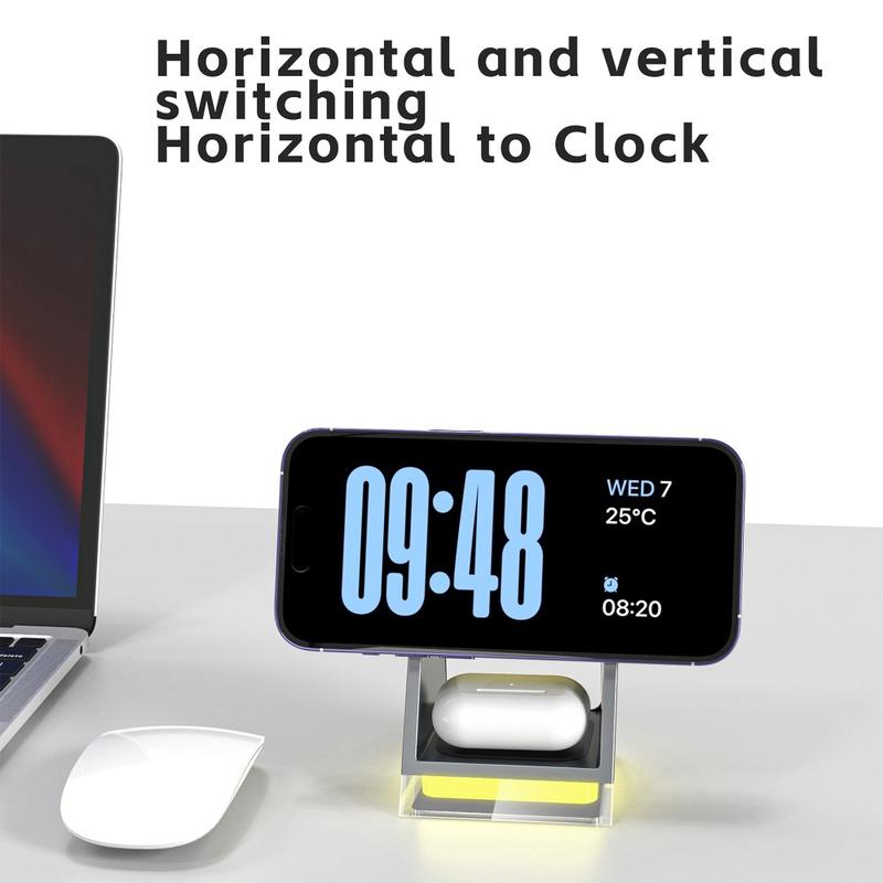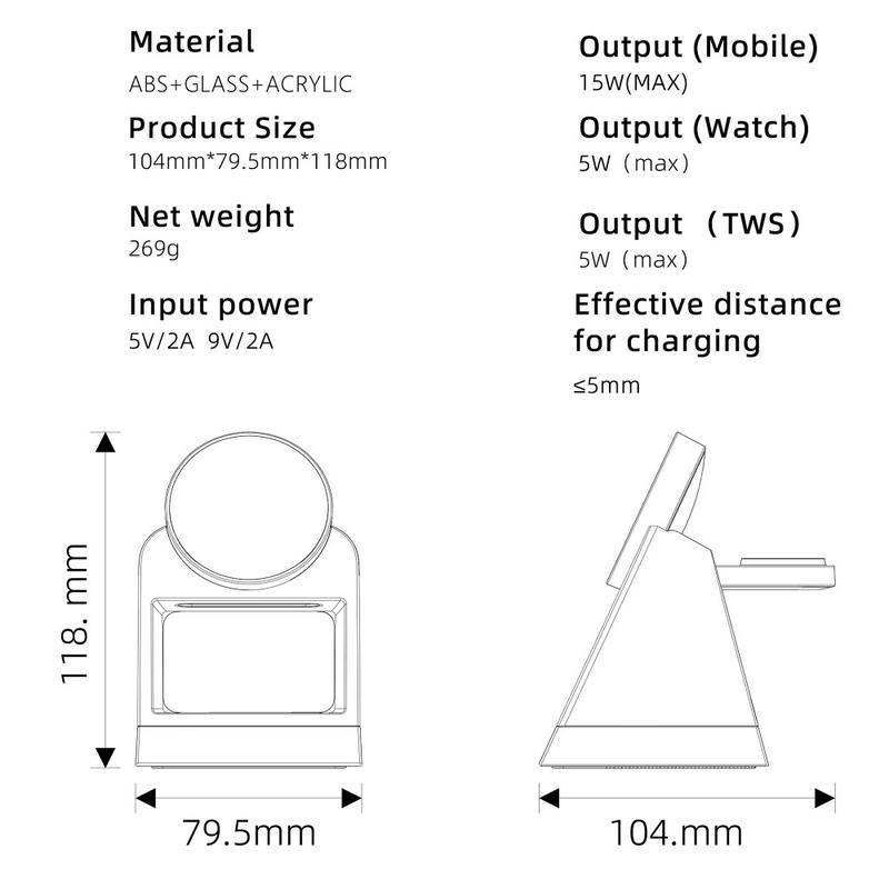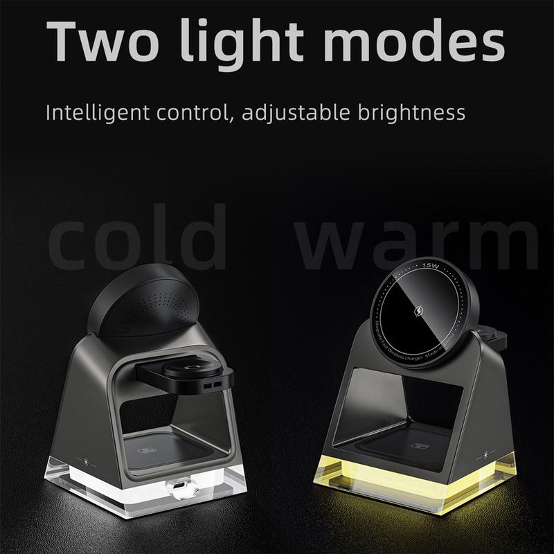 W83 3-in-1 Magnetic Wireless Charger with Crystal Night Light for Smartphone, Smartwatch, TWS Earbuds - 15W