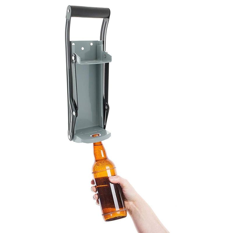 - Built-in bottle opener: integrated steel hook under the press pops crown caps in one quick motion.