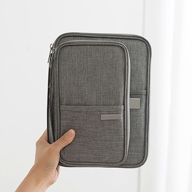 Keep every document safe and organised on business trips or family holidays with this large travel wallet. Made from lightweight 300D cationic polyester, the case repels rain splashes and accidental spills while weighing almost nothing in a shoulder bag. A full zip closure opens to reveal dedicated slots for four passports, boarding passes, bank cards and cash, so check-in and security queues move faster and stress free.