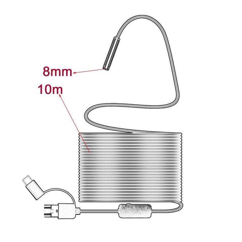 Waterproof 8mm Endoscope Camera - USB, MicroUSB, Type-C - IP68