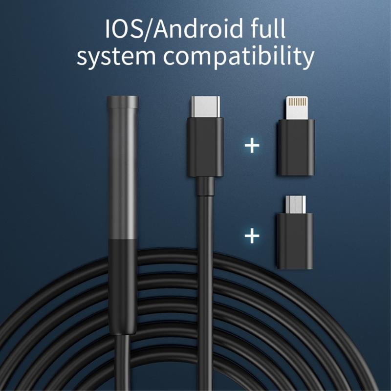 Waterproof 8mm USB-C Endoscope Camera for iPhone, iPad, Smartphones, Tablet - USB-C/Lightning Adapter, USB-C/microUSB Adapter - 3m