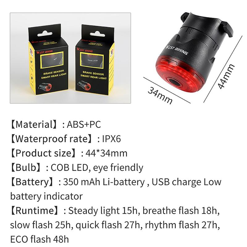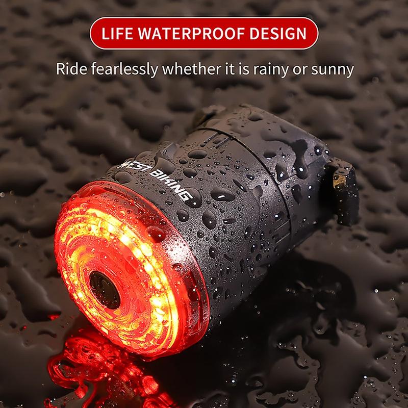 WEST BIKING Smart Sensor Bike Brake Light 6 Modes Waterproof USB Charging Bike Seatpost LED Tail Light