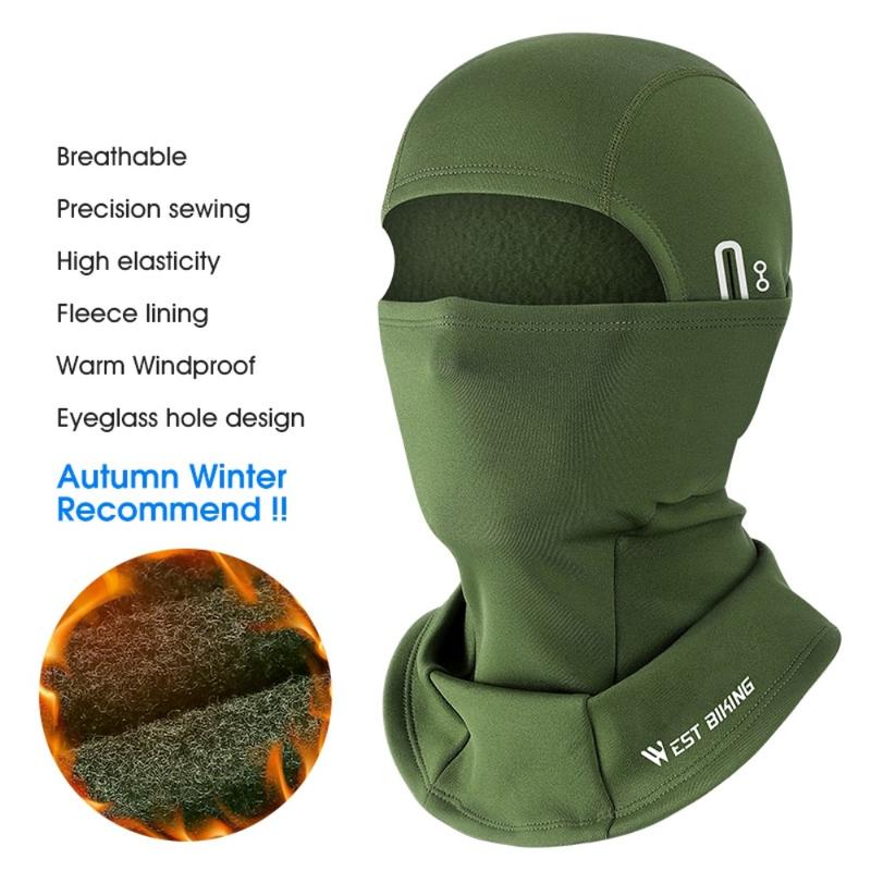 WEST BIKING YP0201343 Větruodolný cyklistický šátek Thermal Neck Gaiter Teplý prodyšný kryt krku Kryt hlavy s otvory pro brýle - Zelený