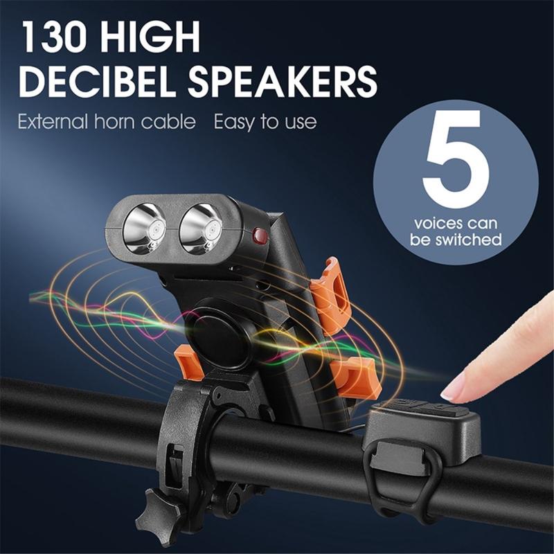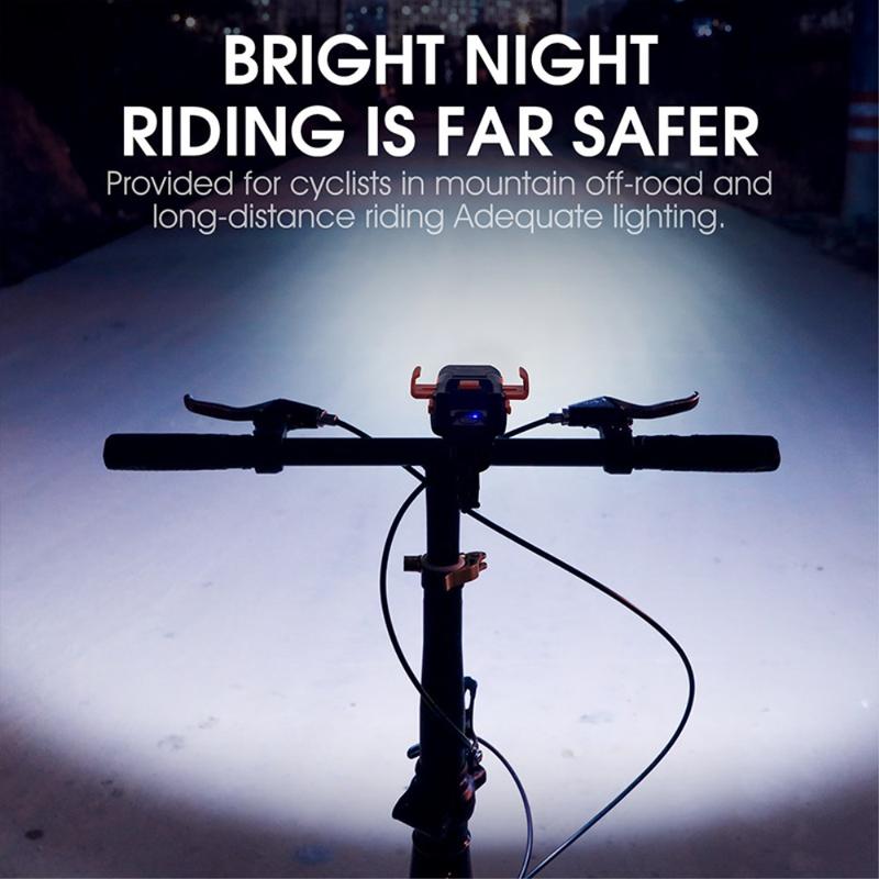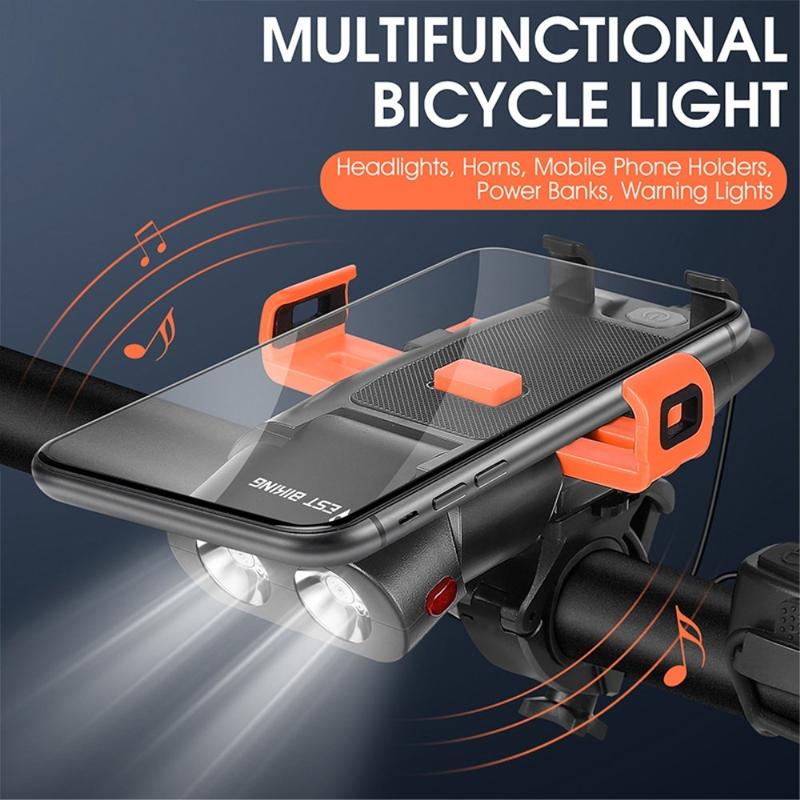 5-in-1 function: power bank, bike front light, mobile phone holder, horn, warning light