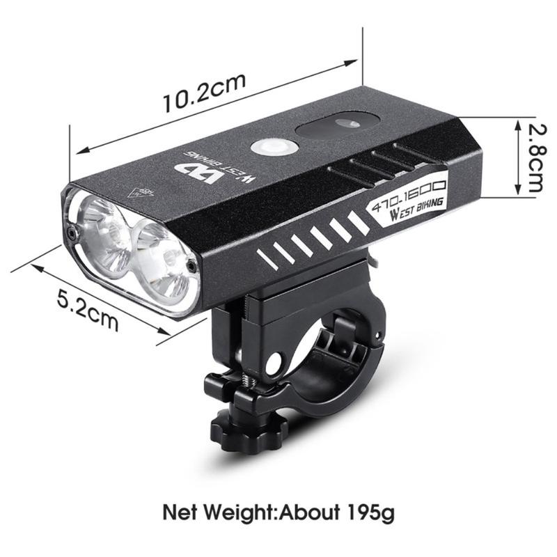WEST BIKING YP0701329 1600LM Bright LED Bike Front Light Bicycle Night Cycling Safety Lamp Flashlight