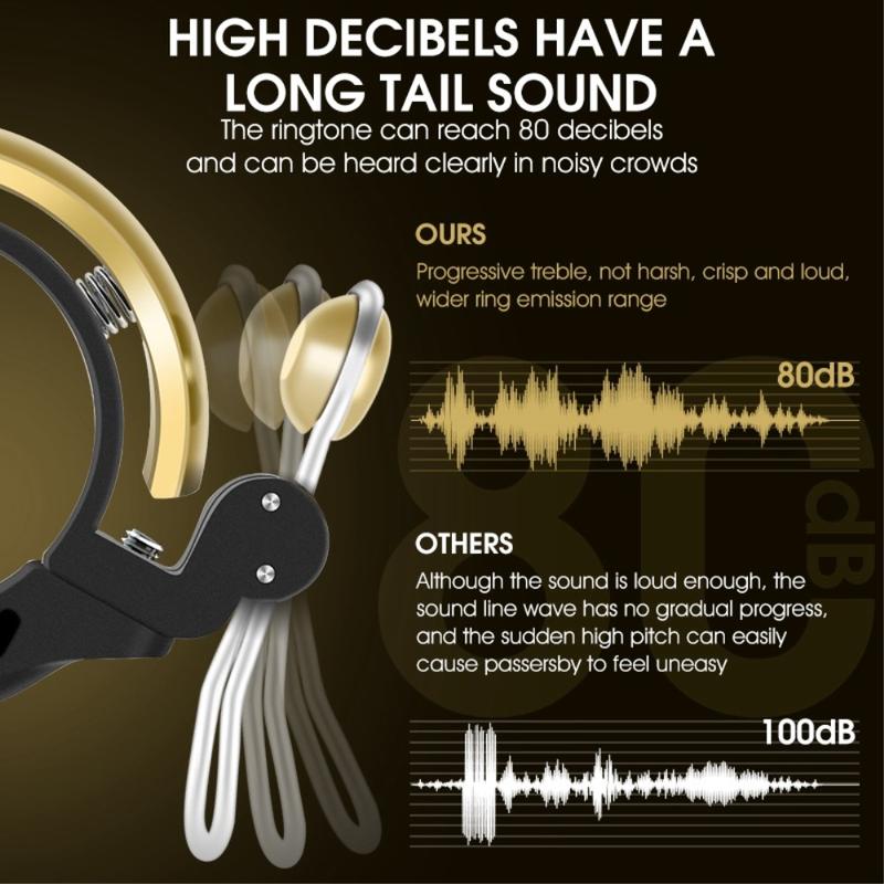 Copper shells are popular because they resonate well, producing a brighter tone that carries further in outdoor environments. A compact bell is often more practical than larger horns because it fits neatly among modern handlebar accessories like lights, phone mounts, and bike computers. An 80 dB bell is typically strong enough to be heard in busy areas without needing excessive force.