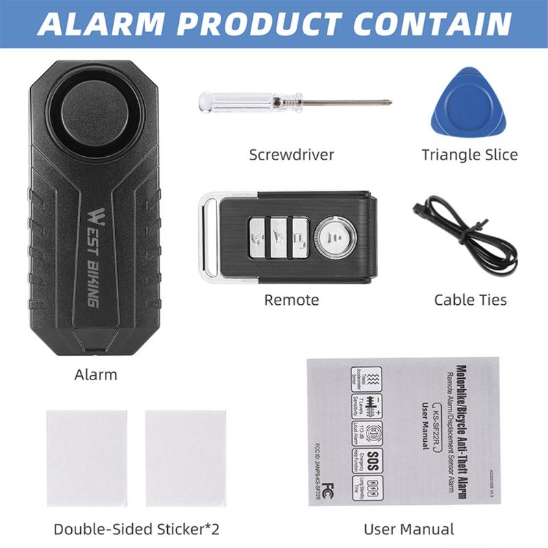 West Biking YP0706052 Anti-Theft Wireless Bike Alarm with Remote Control