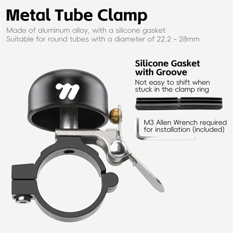 Equipped with an adjustable aluminum alloy clamp, the bell fits handlebars with diameters of 22.2-28 mm. A protective silicone pad prevents scratches, ensuring a secure, stable, and damage-free installation.