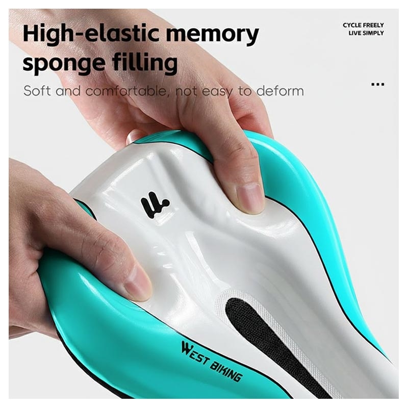 Make your rides more comfortable with the WEST BIKING YP0801256 Bicycle Seat Cover. Built with soft rebound memory foam and a waterproof PU surface, it helps reduce saddle pressure and improves comfort on longer trips. The 3D ergonomic shape with a hollow breathable mesh supports airflow to reduce heat buildup, while the large anti-slip silicone area keeps the cover stable during pedalling. A durable Oxford fabric structure adds extra resistance to wear, making it a practical upgrade for road bikes and many other bicycle types.