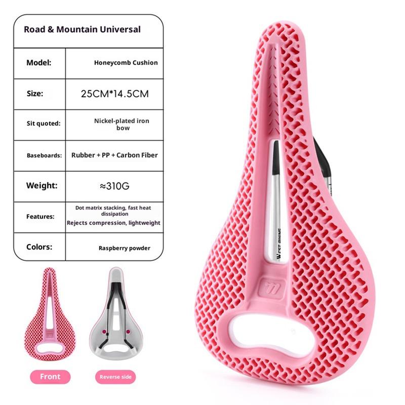 Ride more comfortably with the West Biking honeycomb hollow bike saddle. Designed for road bikes and mountain bikes, this lightweight saddle combines a 3D honeycomb structure, pressure-relief hollow design, and targeted cushioning zones to improve comfort on both short and longer rides.