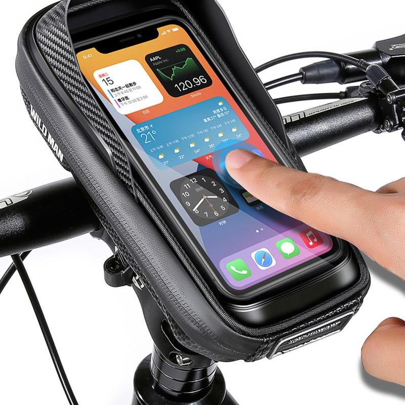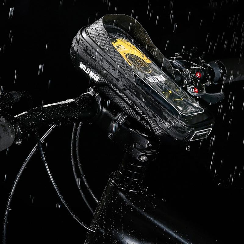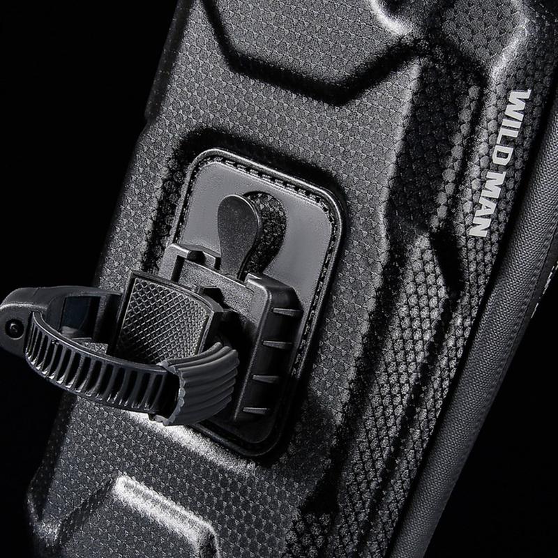 The WILD MAN E16 bike storage bag is a practical cycling accessory designed to keep your essentials protected, organised, and easy to access while riding. Built from a hard EVA + PU shell, it offers strong shape retention, water repellence, and resistance to daily wear. The integrated TPU touch screen film lets you use navigation apps or maps directly through the pouch, while the sun visor design improves screen visibility in bright daylight. With a 0.5 L capacity, it provides enough space for your phone and small essentials without getting in the way of steering—ideal for commuting, road cycling, or longer rides.
