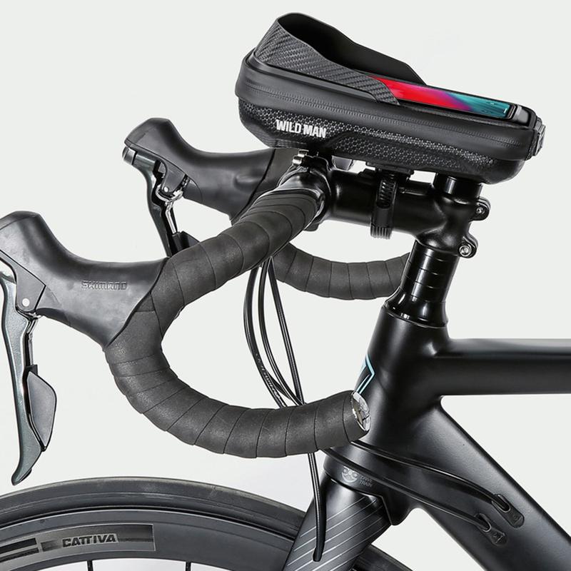 Wild Man E16 Bike Stem Storage Bag - Hard EVA Bicycle Pouch with TPU Touch Screen, Waterproof, Reflective Logo