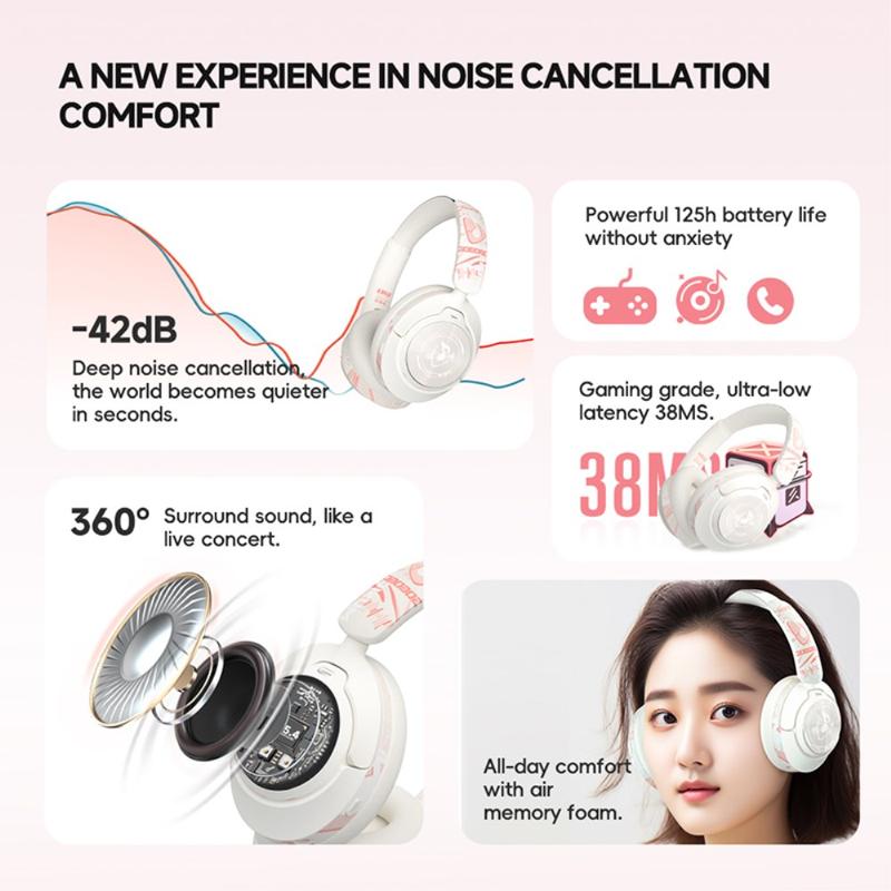 ANC smart noise cancellation, ultra-fine acoustic mesh, cancels out noise comprehensively