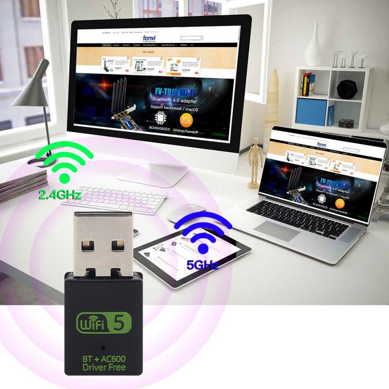 Wireless USB WiFi Dongle / Bluetooth Adapter for PC, Laptop - 600Mbps, Dual Band 2.4GHz/5.8GHz, Bluetooth 4.2