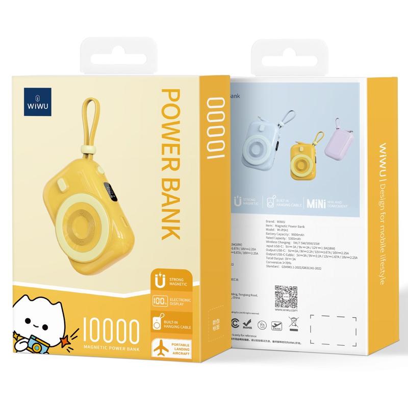 The WIWU Wi-P041 Small Snail Power Bank is a versatile and stylish accessory designed to keep your devices charged on the go. With a 9600mAh capacity, it ensures you have ample power for your smartphone and other gadgets. Its magnetic wireless charging feature allows for convenient and fast charging without the need for cables. The compact and portable design, along with the included Type-C cable, makes it a perfect companion for travel and daily use.