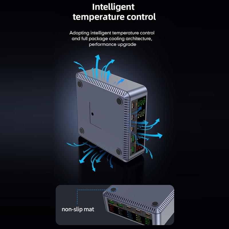 The WLX-F2 delivers exceptional power, modern PD3.1 support and versatile port options in one efficient GaN desktop charger. It’s perfect for users with multiple high-demand devices, offering faster charging, improved heat control and enhanced safety—all in a compact, all-in-one charging hub.