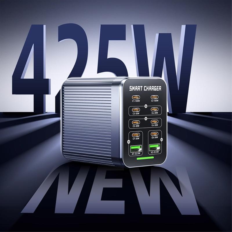 WLX-G1 425W GaN Desktop Charging Station 10-Port - Multi-Device Fast Charger with PD/QC/PPS, Smart Fan Cooling, 100-240V