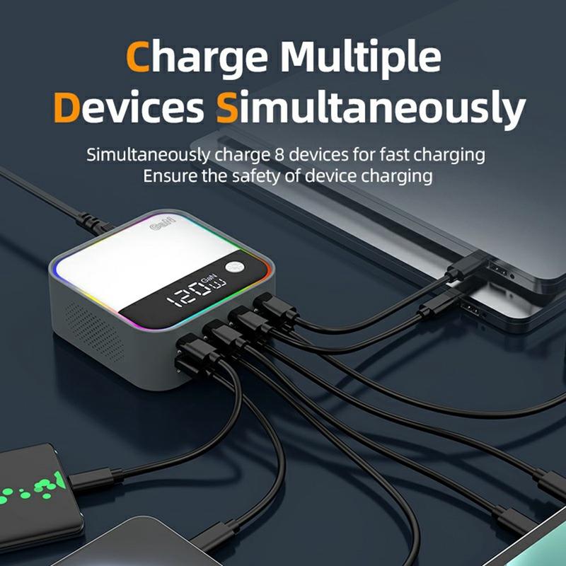 - 120W multi-device charging with 8 total ports (4 USB-C + 4 USB-A)