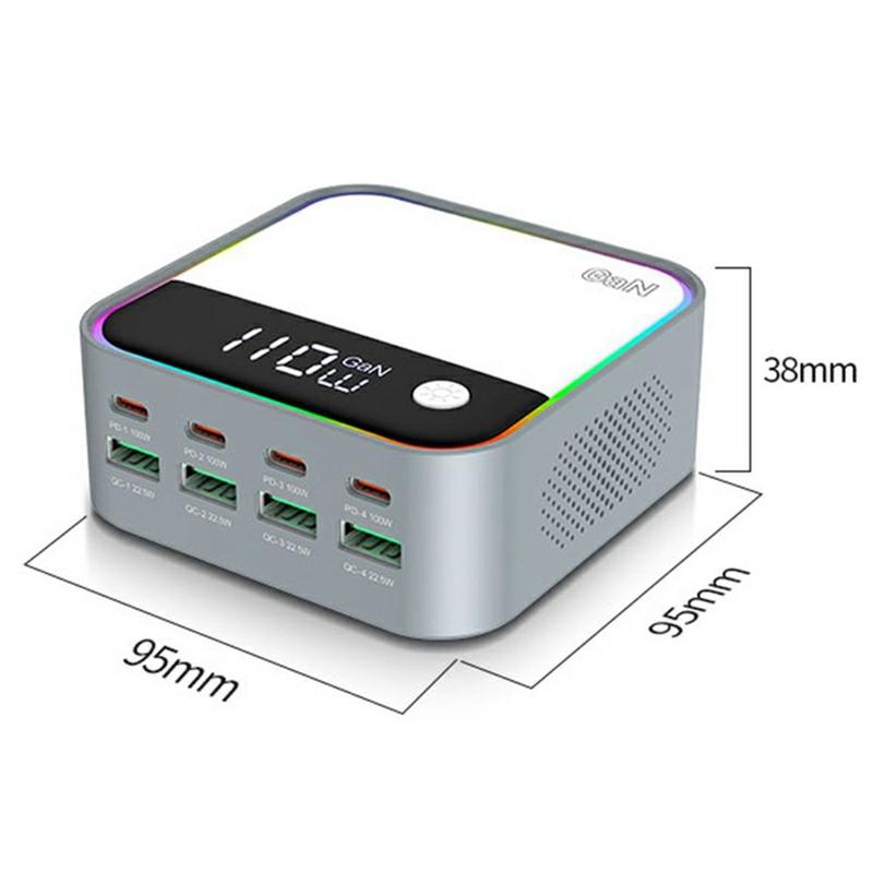 WLX-M8 120W Desktop Charging Station with RGB Lighting - 8-Port GaN Fast Charger with 4x USB-C, 4x USB-A, EU Plug