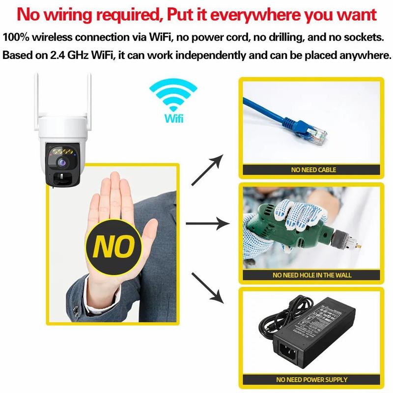 - Pan-Tilt Control & AI Tracking – 90° horizontal / 105° diagonal coverage plus intelligent humanoid detection that follows intruders and filters false alarms from pets or swaying trees.