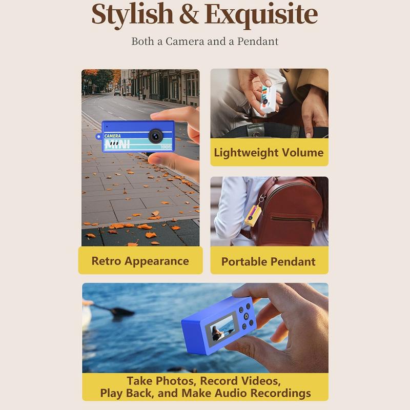 Capture fun moments anywhere with the X7 retro mini thumb camera. Designed in a compact, pocket-friendly size, this lightweight digital camera features a nostalgic style while offering modern 1080p Full HD recording. The built-in 0.96" IPS color screen allows quick preview and playback, making it easy to check photos and videos instantly.