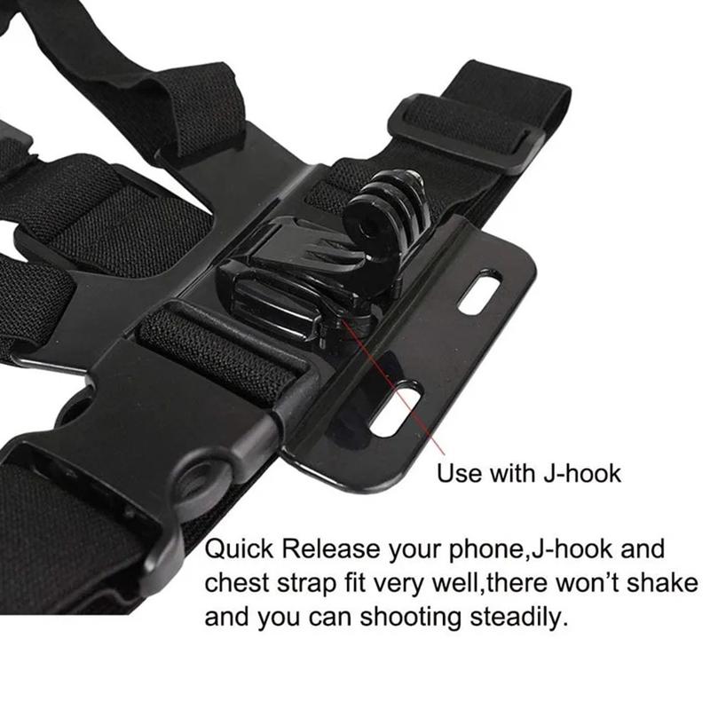 XD-27 Action Camera Chest Mount with Phone Holder - Adjustable Nylon Chest Belt for GoPro and Smartphones