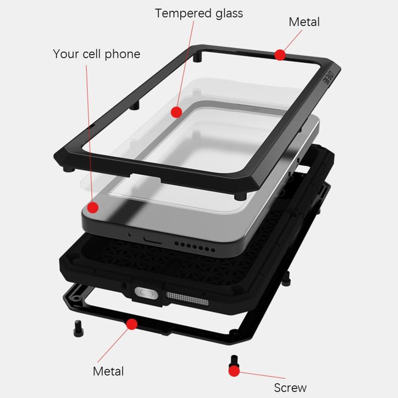 - Materiály: kov, TPU, tvrzené sklo