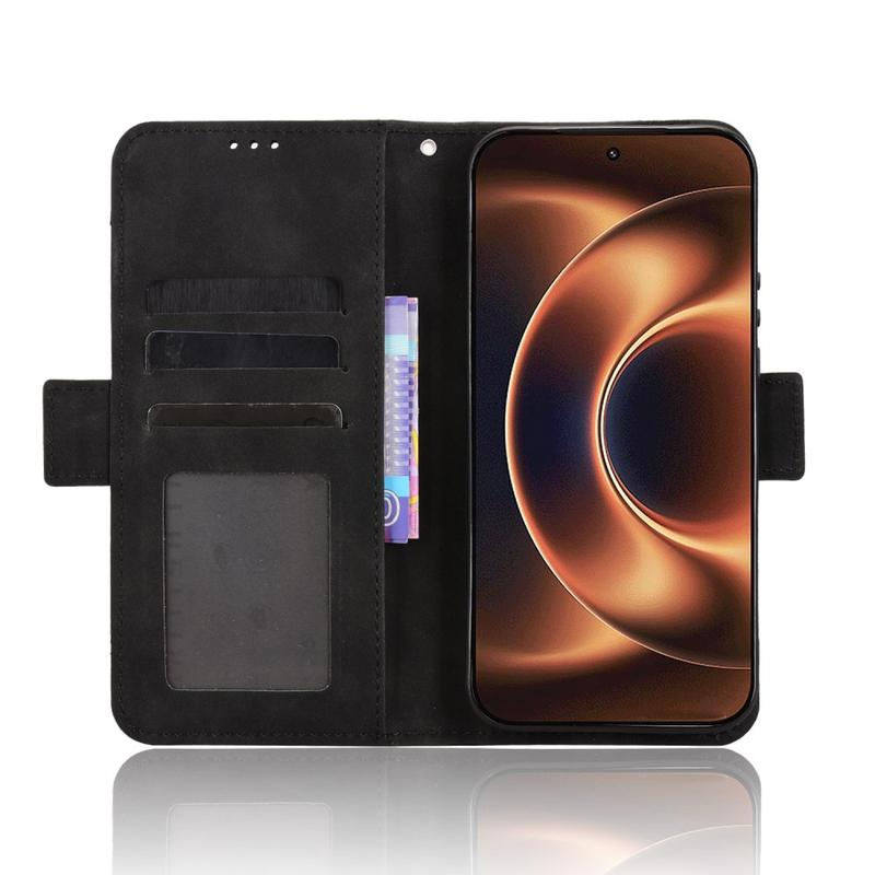 Combine style and functionality with the Xiaomi 17 Ultra Wallet Case. This premium wallet cover is crafted from high-quality polyurethane, offering a sophisticated look while providing reliable protection for your Xiaomi 17 Ultra. The case features multiple card slots, allowing you to store your essentials like credit cards, IDs, and cash securely. Its all-in-one design means you can leave your wallet at home, making it perfect for those on the go. The durable construction ensures long-lasting protection against scratches, drops, and everyday wear.