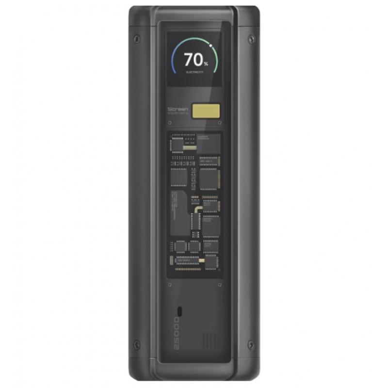 Take workstation-level charging everywhere you go. Xiaomi’s HyperCharge Power Bank 25000 squeezes five high-density 5 000 mAh cells (90.8 Wh total) into a palm-sized brick that is still cleared for carry-on flights (<100 Wh). A next-gen PD 3.1 USB-C port fires out up to 140 W—enough for a MacBook Pro—while a second USB-C (45 W) and a USB-A (120 W) let you fast-charge three devices at the same time. A colour screen shows live wattage and remaining capacity, and nine-layer safety electronics keep temperatures and currents in check. From city commutes to outdoor shoots, this is the one power bank that covers phones, laptops and wearables in a single charge cycle.