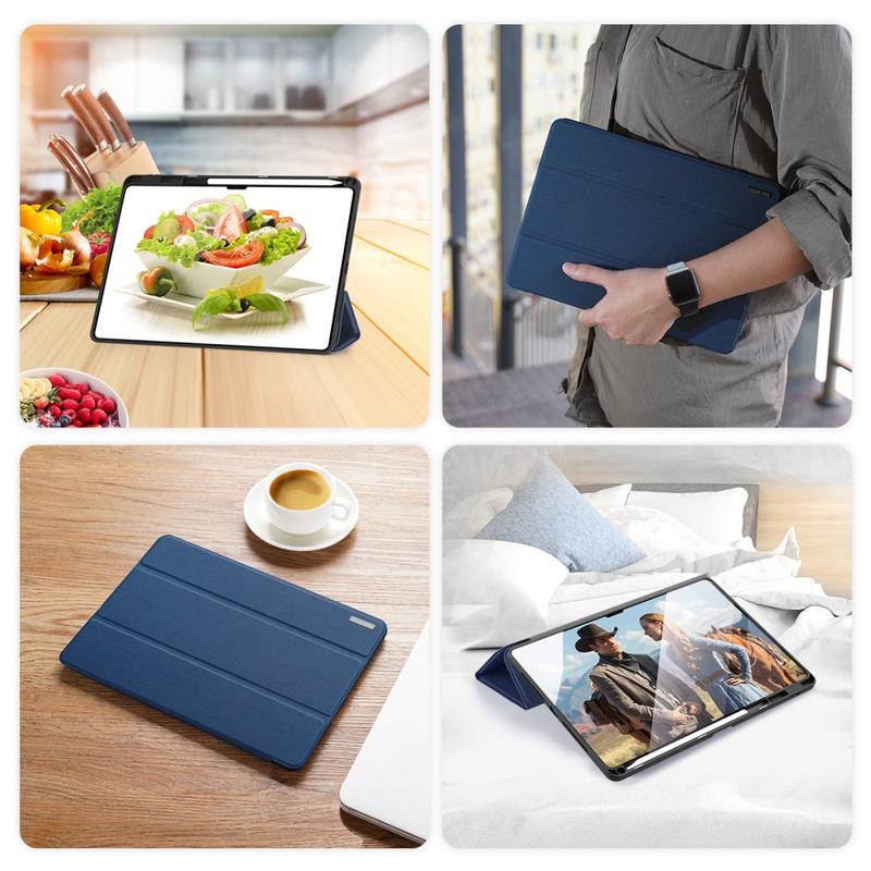 Toto příslušenství chrání zařízení před promáčknutím a poškrábáním a rozšiřuje jeho funkčnost. Přední chlopeň slouží jako stojánek se třemi režimy pro snadné psaní a sledování videa bez použití rukou.