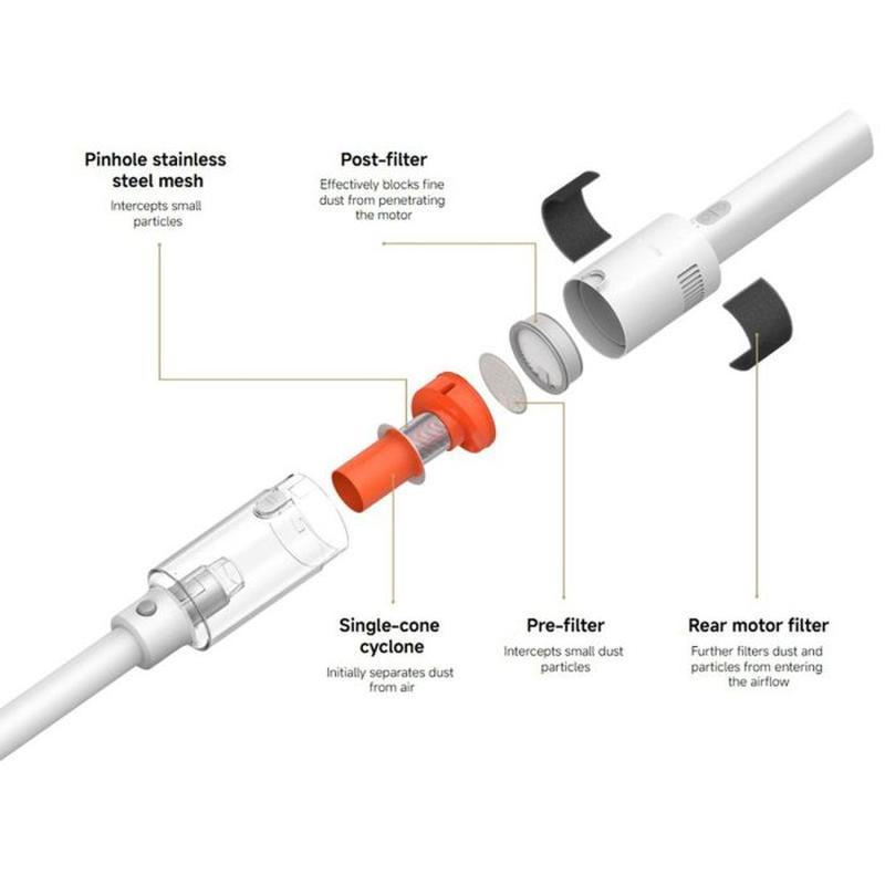 Powered by a high-speed motor running up to 110,000rpm, the Xiaomi P30 delivers up to 50AW suction power to help remove fine dust and debris more effectively. The vacuum uses single-cone cyclone separation technology to improve air and dust separation and reduce the risk of filter blockage during use. A 5-stage precision filtration system helps capture particles as small as 0.3 m, with filtration efficiency up to 99.8%, helping support cleaner air output while vacuuming.