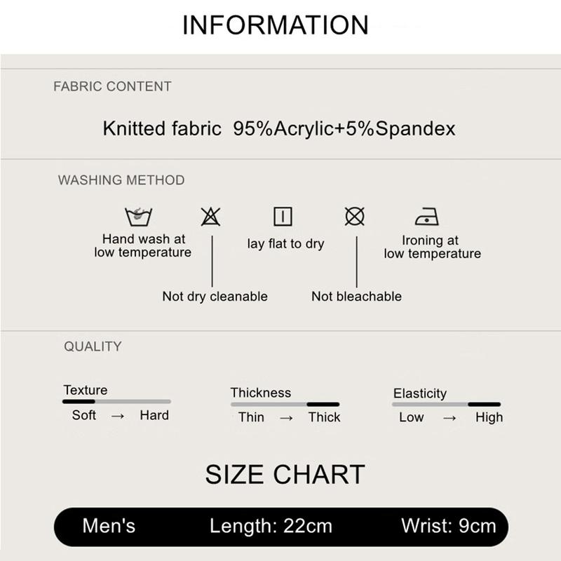 Vyrobeno z 95% akrylu + 5% spandexu, měkké, pohodlné a prodyšné, udržuje ruce v teple v chladném počasí.