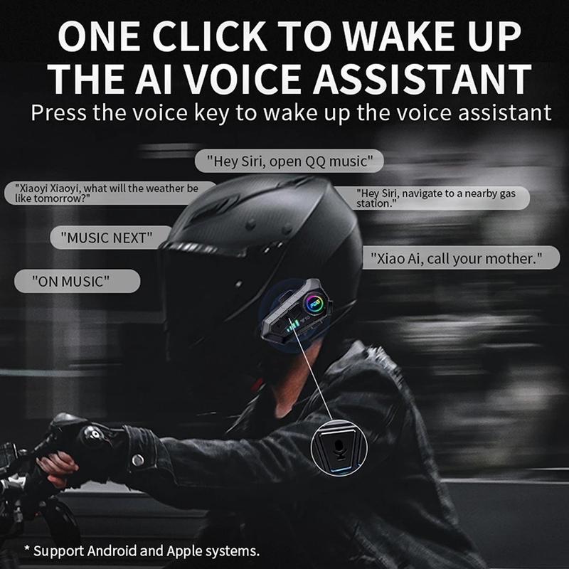 A built-in microphone with dual noise cancellation and a windproof sponge helps reduce wind and background noise. This allows clearer conversations during riding, city traffic or highway travel.