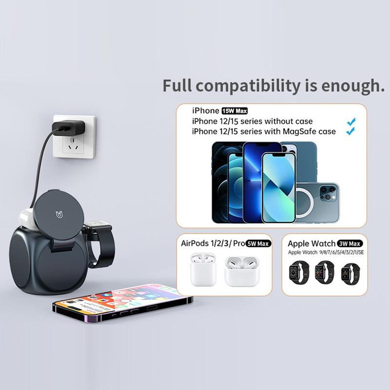 - Wide Device Compatibility - Compatible with Apple Watch Series 1-10, AirPods with wireless charging case, and all Qi-enabled smartphones including iPhone and select Android models.