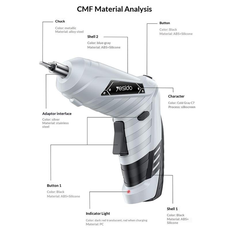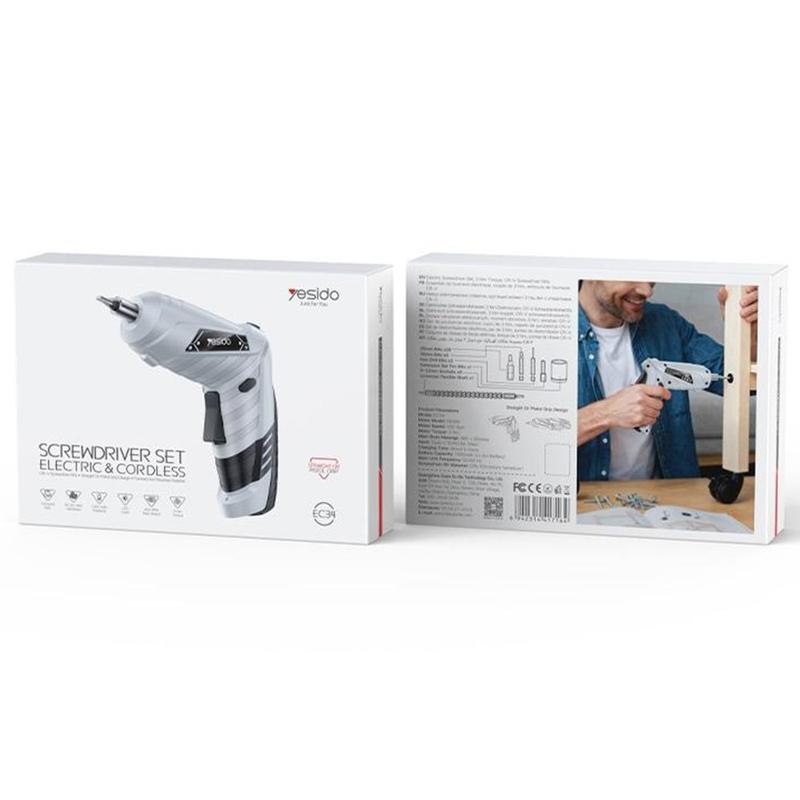 Yesido EC34 Cordless Electric Screwdriver Kit - Dual Purpose Straight and Gun Type Repair Tool with LED Light