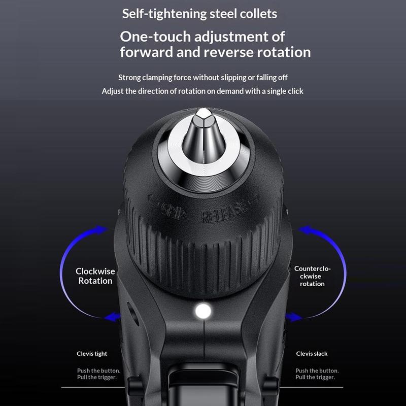 The screwdriver features simple one-button control for clockwise and counterclockwise rotation, making it easy to switch between tightening and loosening screws. This improves efficiency during assembly, repair, and maintenance work, especially when moving quickly between tasks. The intuitive control layout helps make the tool suitable for both experienced users and those who want a practical tool for everyday use.