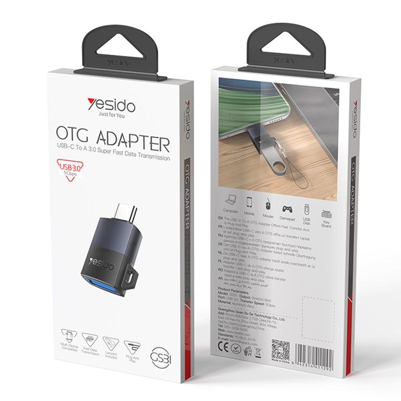 Yesido GS31 USB 3.0 to USB-C OTG Adapter - 18W Fast-Charging Aluminium Alloy Converter