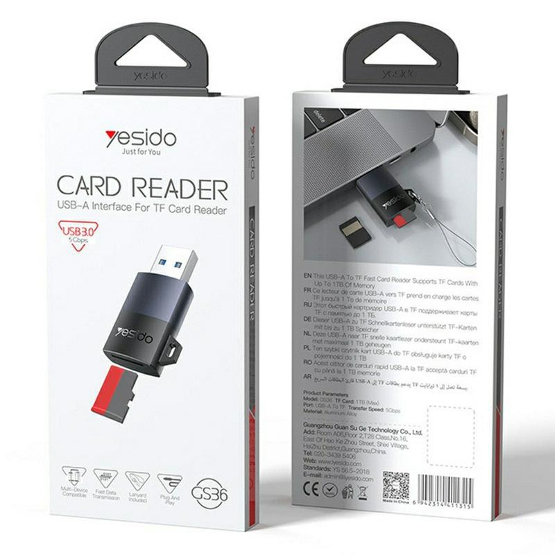 Yesido GS36 USB 3.0 TF Card Reader - 5Gbps Aluminium Alloy Plug-and-Play Adapter